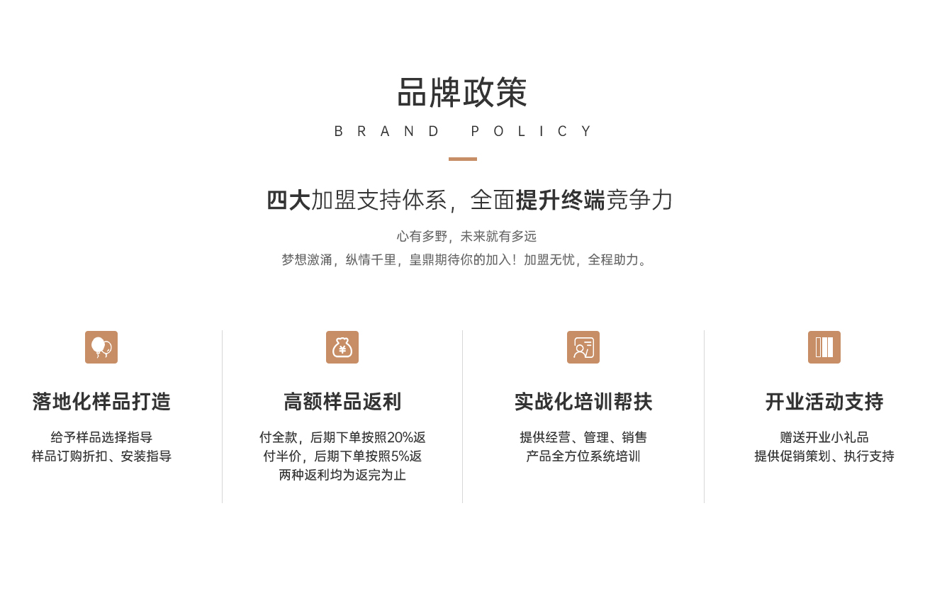 八大加盟支持體系,全面提升終端競爭力。